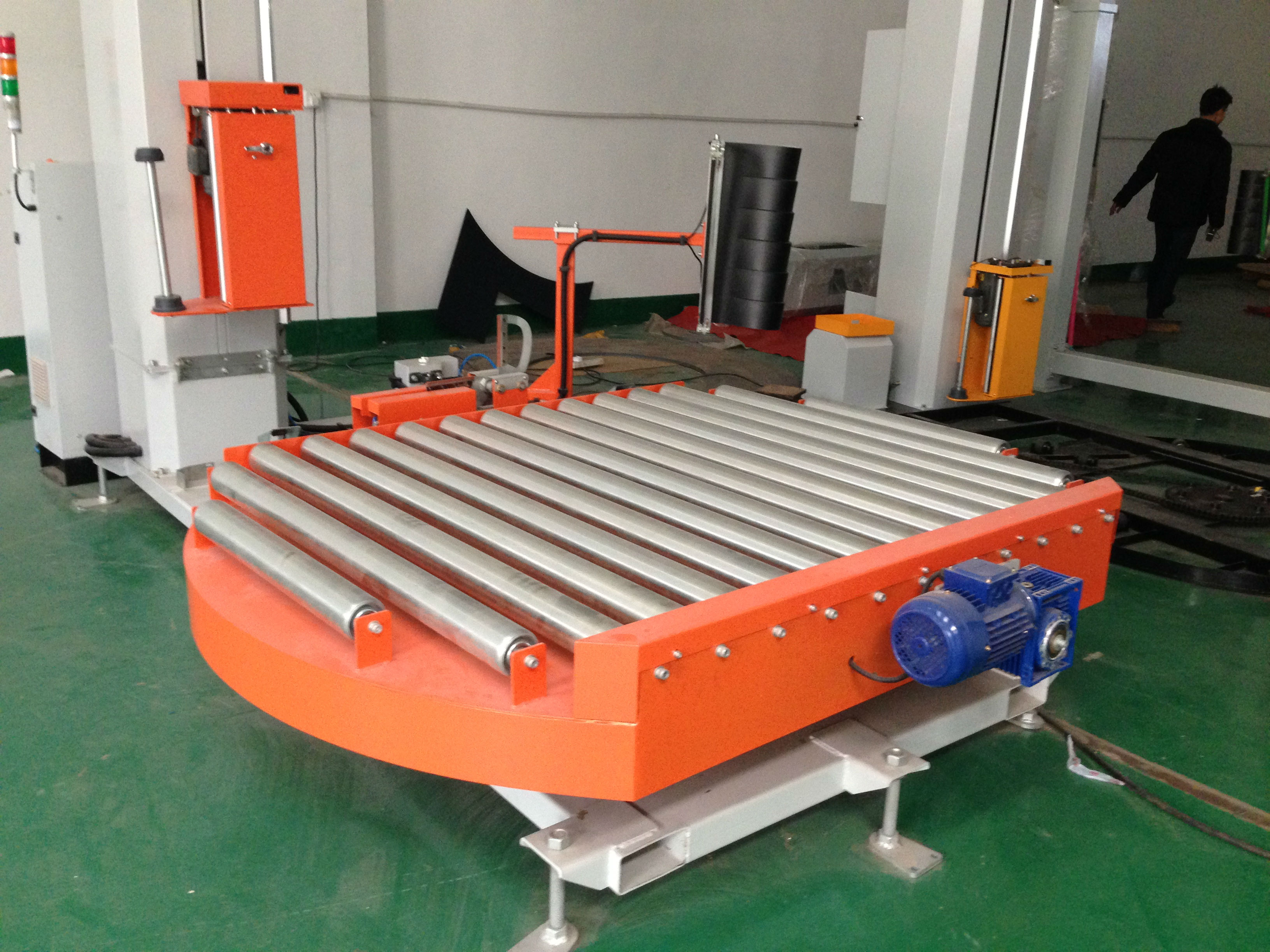 全自动转台在线式缠绕机是适应流水线作业的缠膜机械,满足现代化企业的自动化包装的需求,对提高包装效率,降低劳动强度,减少人力成本,起到积极作用。自动实现托盘四周缠膜及顶部抚摸。轻松实现防尘、防潮及美观可靠的托盘外观,提高包装档次。此类产品已在化工、电子、食品、饮料、造纸等行业自动包装线中得到广泛应用。